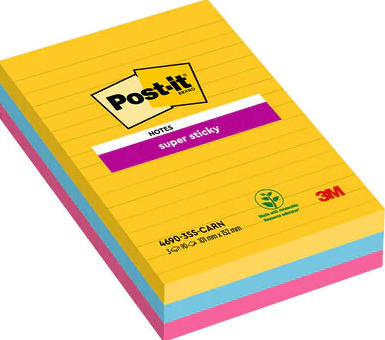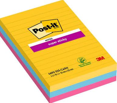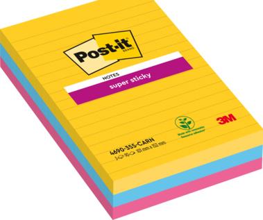 Post-it Haftnotizen Super Sticky, 101 x 152 mm, Rio de Janeiro Collection, 90 Blatt/Block, liniert, - 1 Stück (4690-S3R)