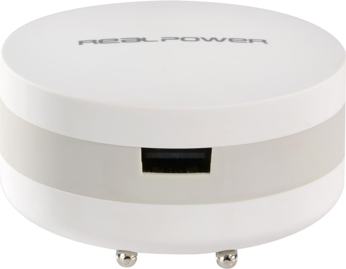 Die RealPower PBC-1800 ist ein praktisches Ladegerät mit integrierter Powerbank und einem einklappbarem Netzstecker. Einfach in die Steckdose gesteckt, lädt die PBC-1800 das angeschlossene Endgerät via USB und den internen 1800 mAh Akku auf. Durch die praktische Einklapp-Funktion und die kompakte Bauform lässt sich das runde Powerbündel leicht verstauen.