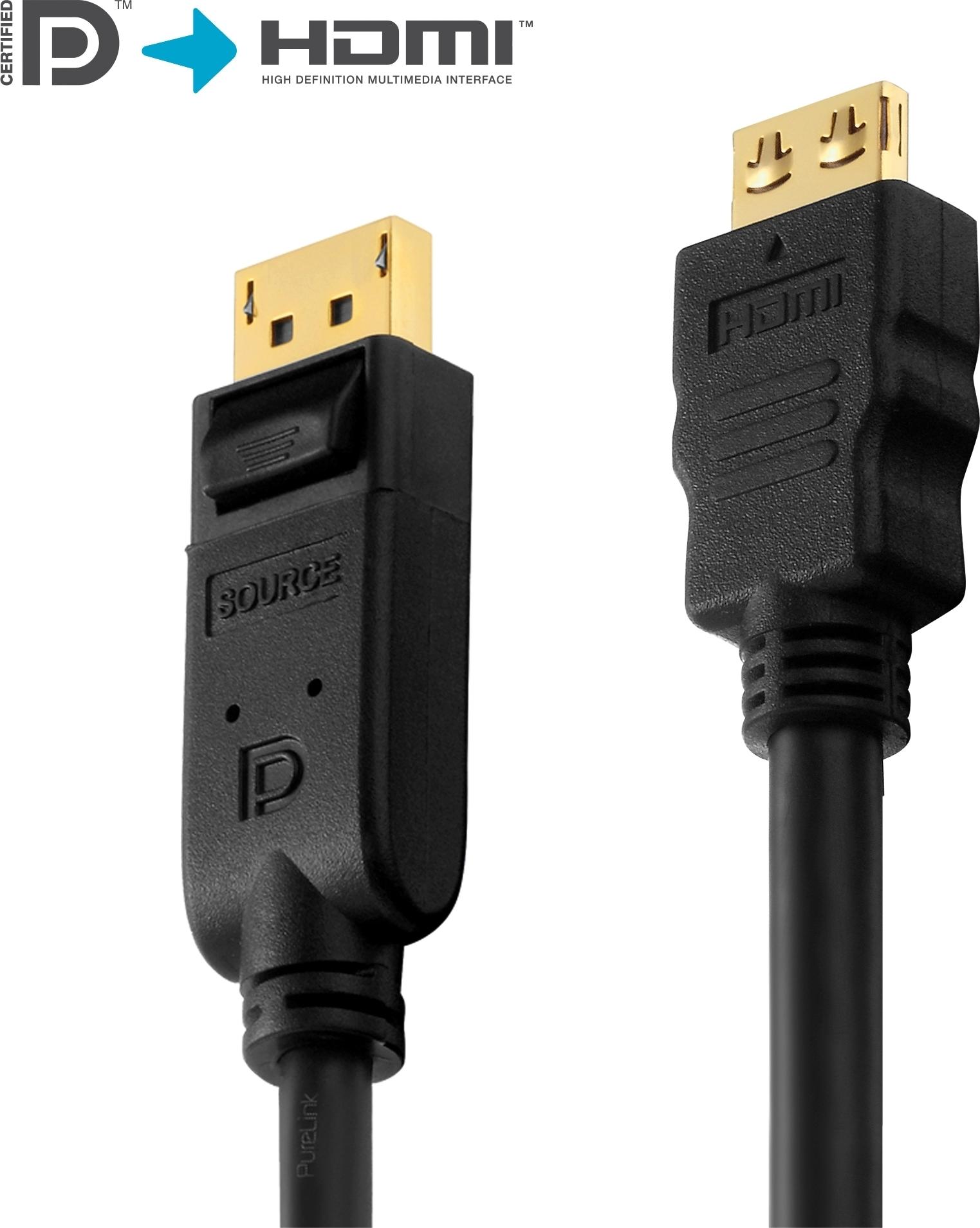 Purelink PureInstall PI5100 - Video- / Audiokabel - DisplayPort / HDMI - DisplayPort (M) bis HDMI (M) - 5 m - Dreifachisolierung - Schwarz - rund