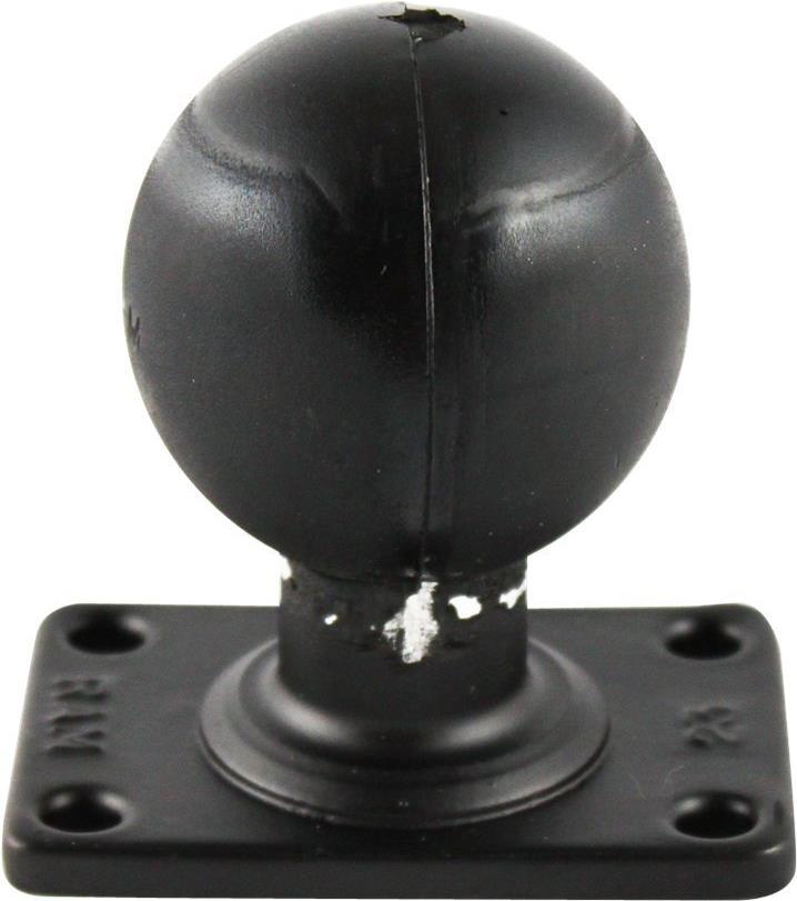 Die rechteckige RAM MOUNT Basisplatte verfügt über eine 2,25 Zoll D-Kugel, die in senkrechter Ausrichtung zur Basis steht. Die rechteckige Basis hat eine Grundfläche von 5,08 x 7,62 cm. Weiterhin verfügt die Basisplatte über vorgebohrte Löcher in jeder Ecke.