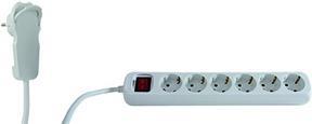 Steckdosenleiste Flachstecker, 6-fach, mit Schalter, 2 m, ws