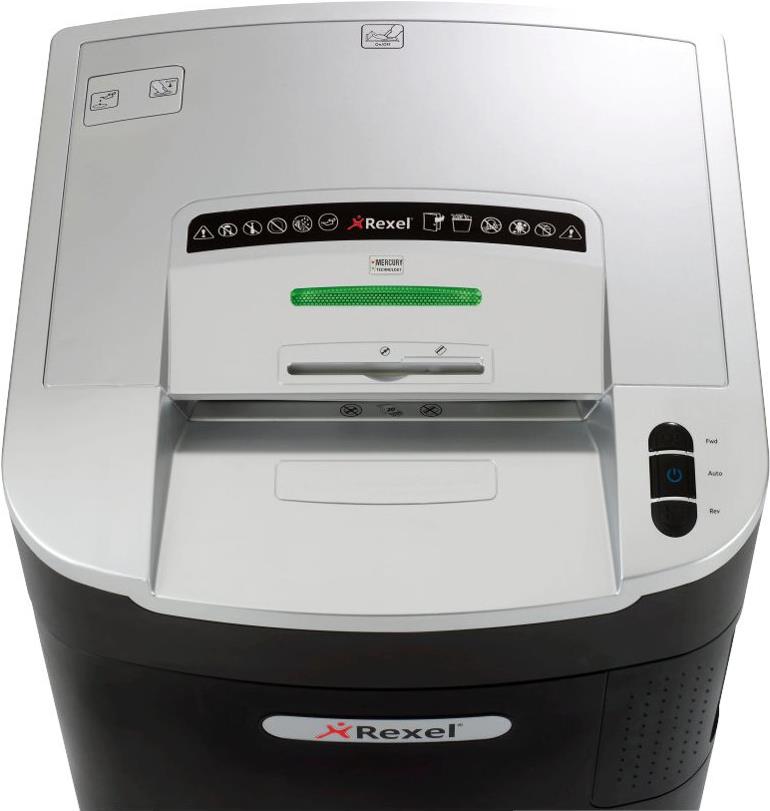 Staufrei, stressfrei und sauber: Der Mercury RLX20 zeichnet sich durch seine Anti-Stau-Technologie aus. Er schreddert in einem Durchgang bis zu 20 Seiten DIN-A4-Papier (80 g/m ) in 4 x 40 mm kleine Partikel (Sicherheitsstufe P-4). Der Abfallbehälter fasst 115 Liter, das entspricht einem Auffangvolumen von 1.100 Blatt. Verwendet werden können praktische recycelbare Abfallsäcke.