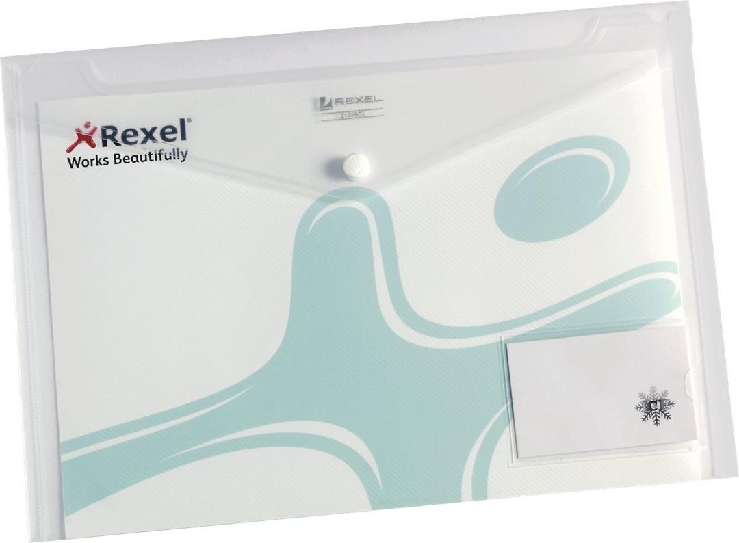 REXEL Dokumententasche ICE, DIN A4 quer, PP, glasklar mit Visitenkartentasche auf der Vorderseite, Druckknopf- - 5 Stück (2101663)