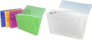 Transparente Projektmappen aus strapazierfähigem PP. Druckknöpfe sorgen dafür, dass die Unterlagen an Ort und Stelle bleiben. Mit Beschriftungsschildchen zur Kennzeichnung der einzelnen Fächer.