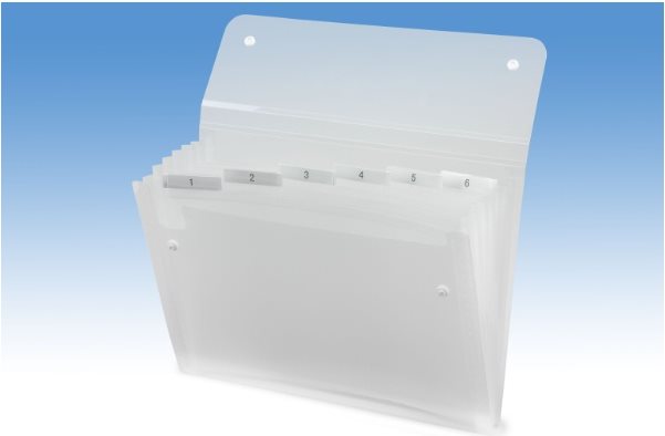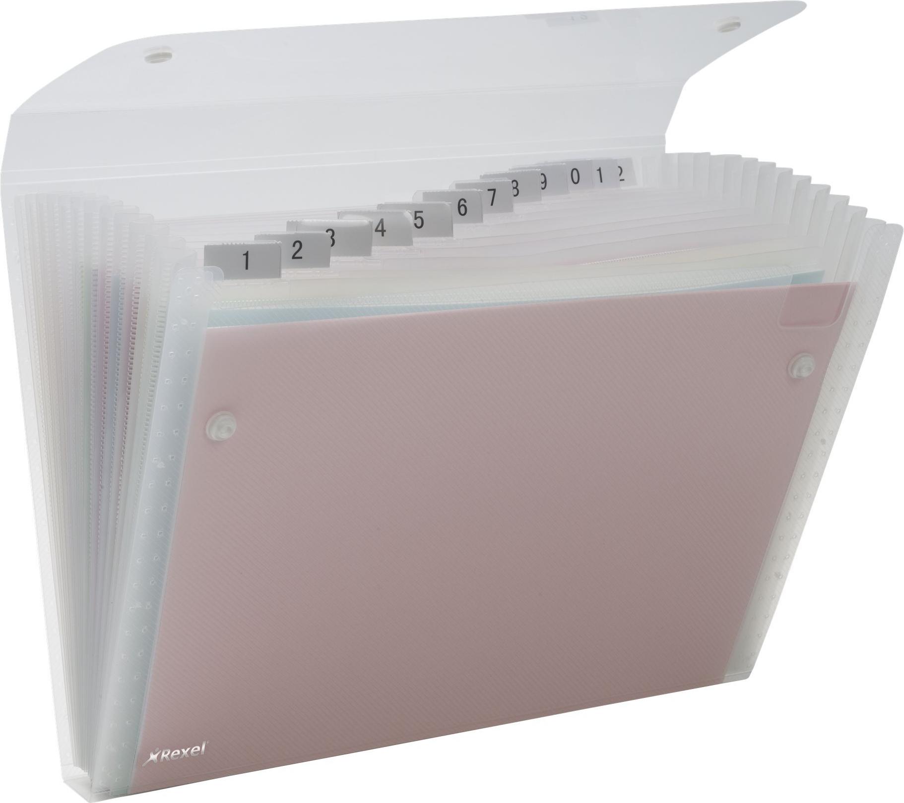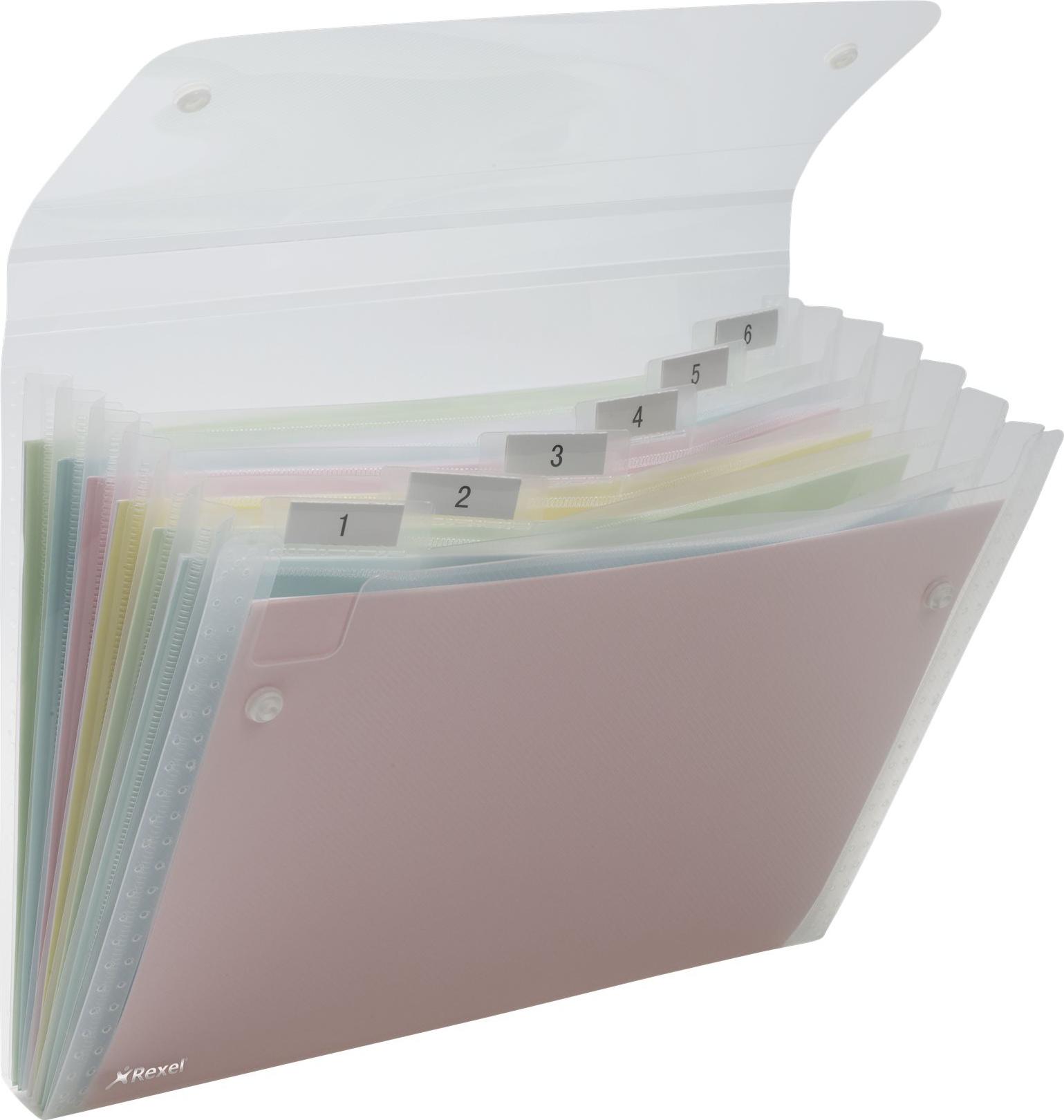 REXEL Fächermappe ICE, DIN A4, 6 Fächer, PP, glasklar Fächer mit Blanko-Taben, mit 2 Druckknöpfen verschließbar (2102033)