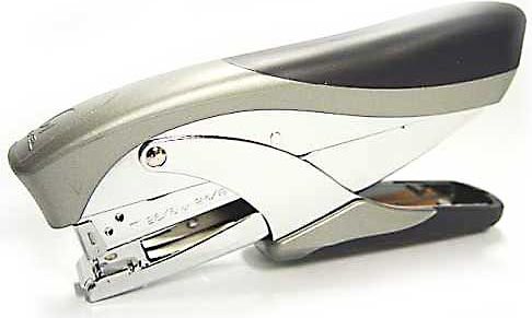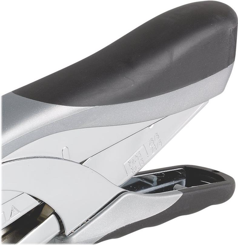 Robuste Heftzange aus Metall und weicher Oberfläche am Griff und ergonomischer Form für bis zu 25 Blatt. Mit Oberlademechanik und Einlegetiefe von 50 mm.