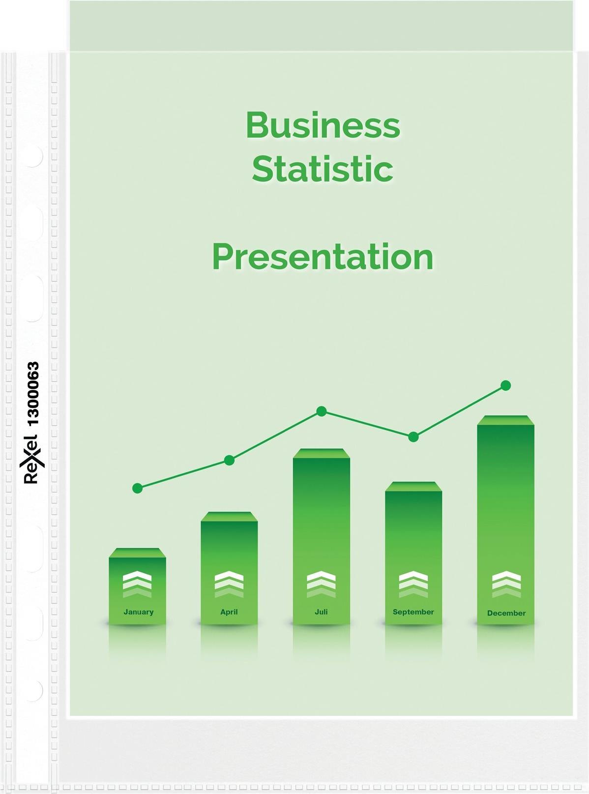 • REXEL Prospekthülle Top Quality, A5, PP, glasklar, 0,08 mm oben offen, Lochung: 80/45-65-45, mit Lochrandverstärkung - 1 Stück (1300063)