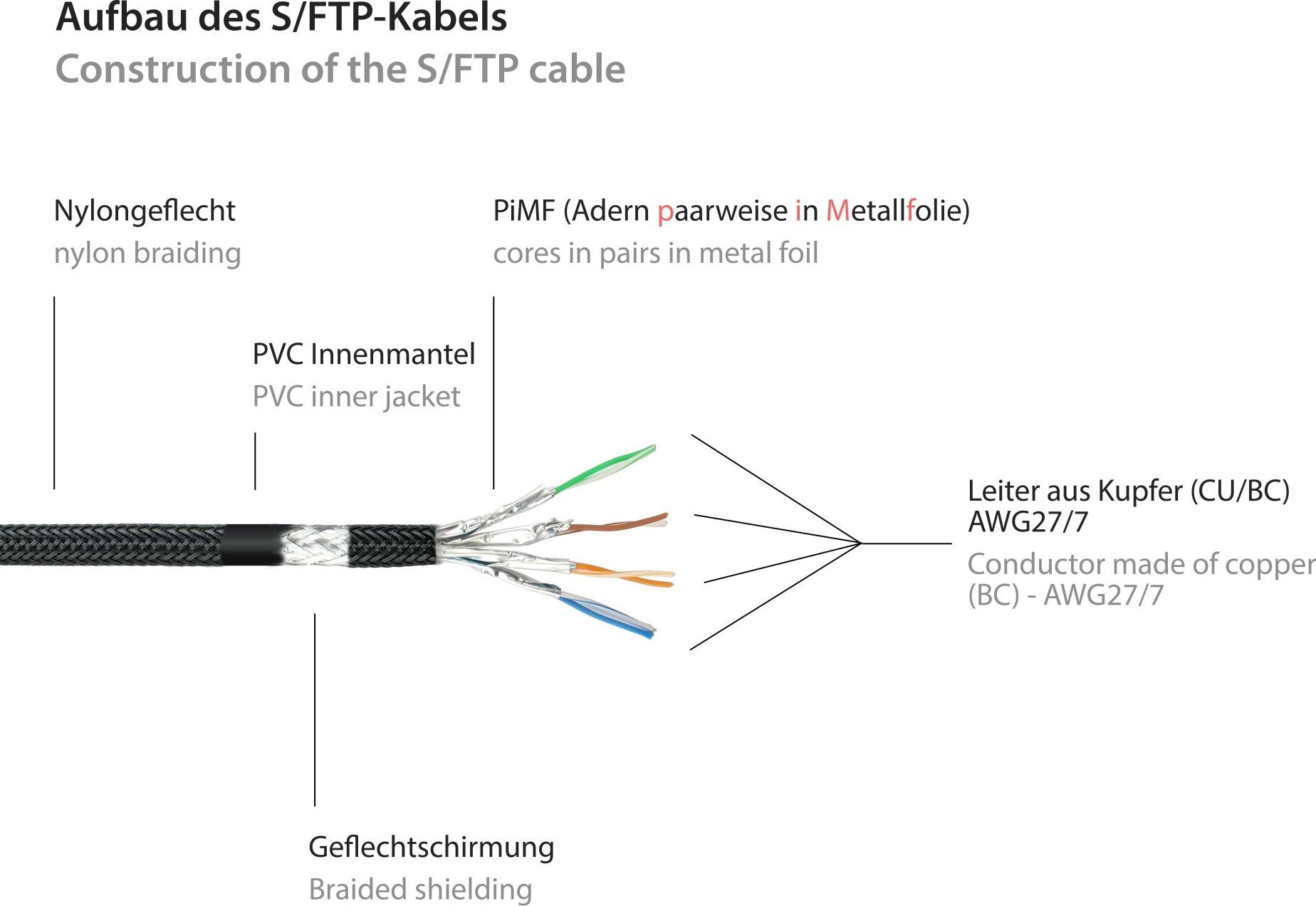 RNS® Patchkabel mit Rastnasenschutz und Nylongeflecht, Cat. 6, S/FTP, PiMF, PVC, 250MHz, OFC, schwarz, 7,5m, PYTHON® Series (8063PY-075S)