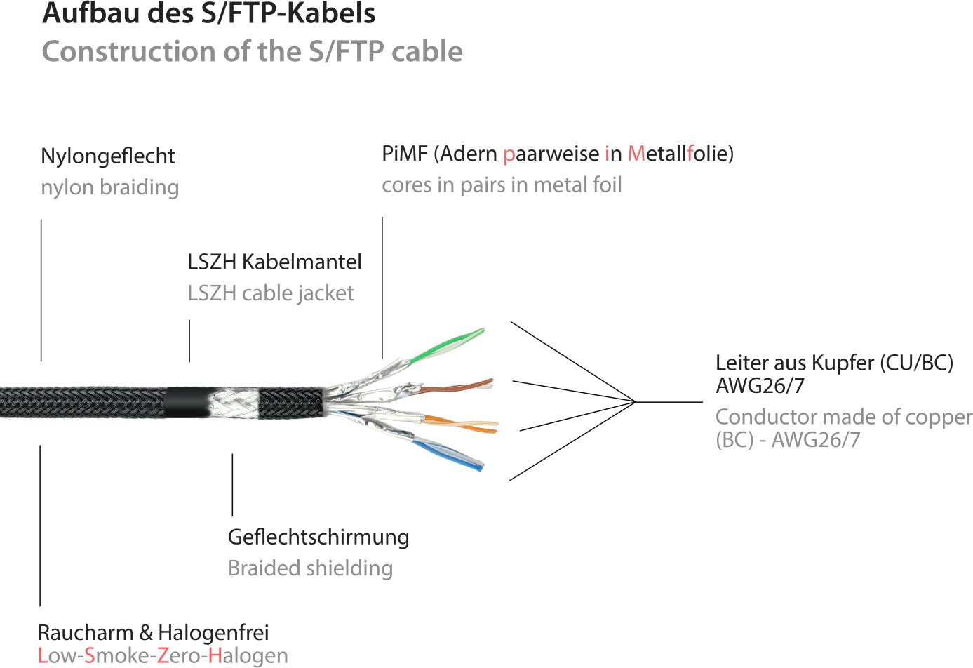 Python® Series RJ45 Patchkabel mitCat.7 Rohkabel, Rastnasenschutz (RNS®) und Nylongeflecht, S/FTP, PiMF, halogenfrei, 600MHz, OFC, schwarz, 20m (8070PY-200S)