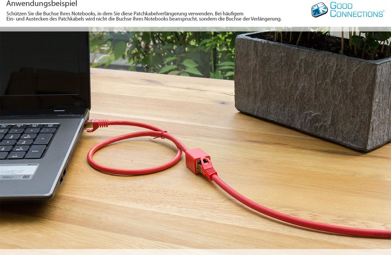 Diese RJ45 Patchkabelverlängerung ist mit allen herkömmlichen Geräten mit RJ45 Schnittstelle verwendbar, wie zum Beispiel, Computer, Notebook, DSL-Modem, Router, Switch, Spielekonsole, Fernseher und vielen mehr. Das Patchkabel ist doppelt geschirmt mit einer zusätzlichen Schirmung der Adernpaare. Somit ist es Gigabitfähig, passend zu Ihrem schnellen DSL Anschluss. Das Patchkabel ist natürlich abwärtskompatibel zu alten Geräten und Installationen der Kategorien Cat. 5 und Cat. 5e. RJ45 Stecker mit RNS: Der RJ45 Stecker besitzt einen Rastnasenschutz (RNS). Dies verhindert ein Wegknicken der Rastnase auf der Oberseite des Steckers. Die Adernpaare bestehen zu 99,99% aus sauerstofffreiem Kupfer (OFC). Dies ermöglicht eine gesteigerte Signalübertragung des Kabels.Produkttext[/head]Anwendungsgebiete:Der letzte Meter: Sie haben bereits ein Patchkabel in Ihren Räumen verlegt, beispielsweise hinter Regalen, unter Laminat oder hinter Fußleisten. Bisher hat die Länge zu Ihrem Gerät gereicht, doch nach Umstellung der Möbel reicht das vorhandene Kabel nun nicht mehr. Ihnen fehlt der \"letzte Meter\". Anstatt nun das gesamte Patchkabel zu ersetzen, schließen Sie einfach eine Patchkabelverlängerung in der für Sie passenden Länge bis zu Ihrem Endgerät an.Schutz Ihres Gerätes: Schützen Sie beispielsweise die Buchse Ihres Notebooks, in dem Sie diese Patchkabelverlängerung verwenden. Bei häufigem Ein- und Ausstecken des Patchkabels wird nicht die Buchse Ihres Notebooks beansprucht, sondern die Buchse der Verlängerung. Somit entfällt eine mögliche kostspielige Reparatur Ihres Notebooks.Eigenschaften:Diese RJ45 Patchkabelverlängerung ist mit allen herkömmlichen Geräten mit RJ45 Schnittstelle verwendbar, wie zum Beispiel, Computer, Notebook, DSL-Modem, Router, Switch, Spielekonsole, Fernseher und vielen mehr. Das Patchkabel ist doppelt geschirmt mit einer zusätzlichen Schirmung der Adernpaare. Somit ist es Gigabitfähig, passend zu Ihrem schnellen DSL Anschluss. Das Patchkabel ist natürlich abwärtskompatibel zu alten Geräten und Installationen der Kategorien Cat.5 und Cat.5e. RJ45 Stecker mit RNS®: Der RJ45 Stecker besitzt einen Rastnasenschutz (RNS®). Dies verhindert ein Wegknicken der Rastnase auf der Oberseite des Steckers. Die Adernpaare bestehen zu 99,99% aus sauerstofffreiem Kupfer (OFC). Dies ermöglicht eine gesteigerte Signalübertragung des Kabels.[head]Hauptmerkmale