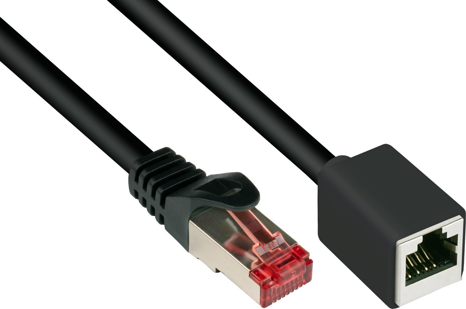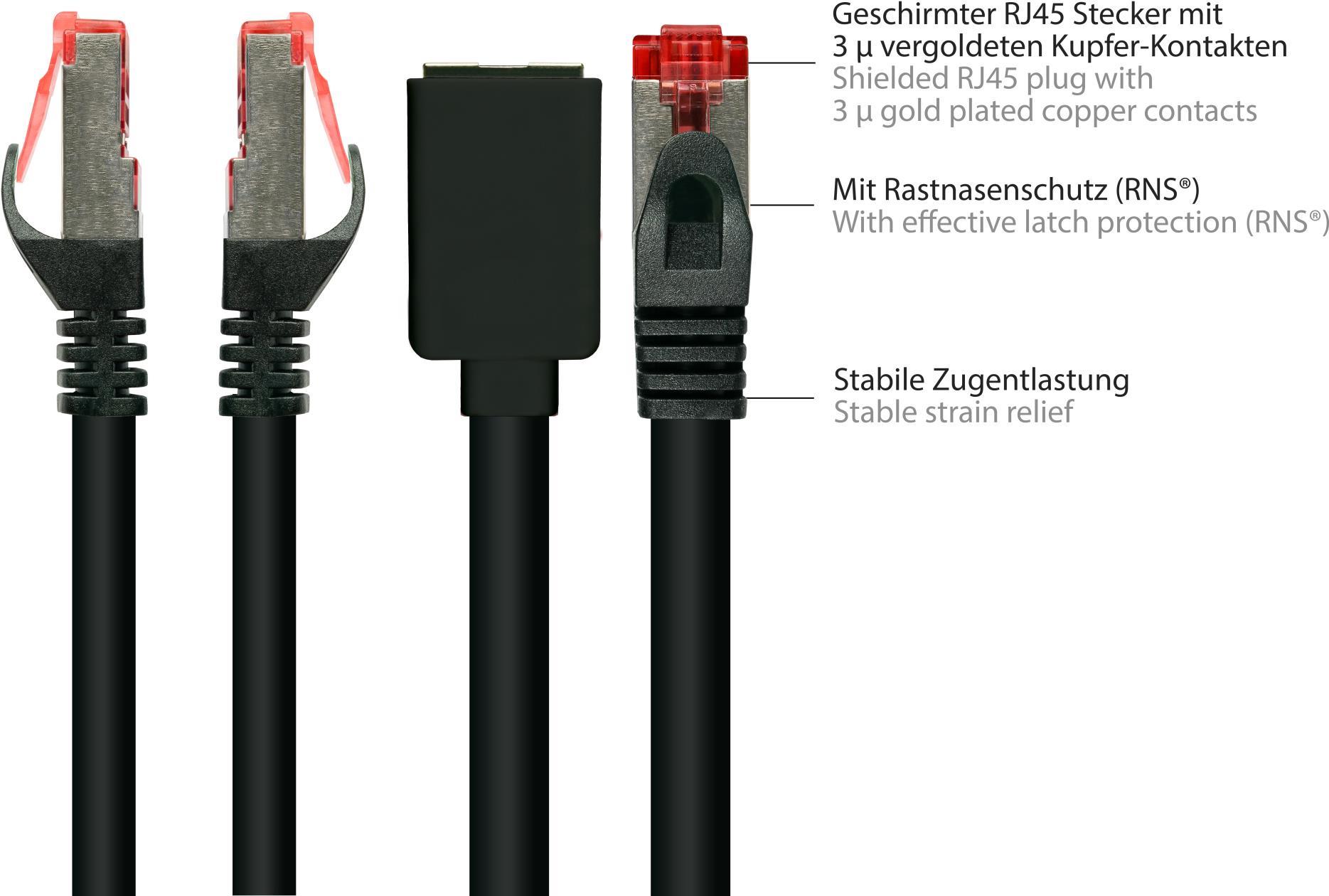RNS® Patchkabelverlängerung mit Rastnasenschutz, Cat. 6, S/FTP, PiMF, PVC, 250MHz, OFC, CU, schwarz, 3m, Good Connections® (8063VR-030S)