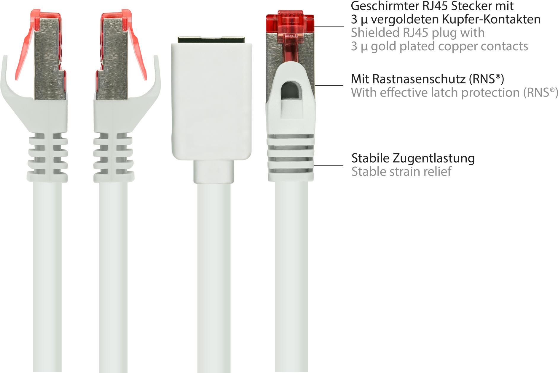 RNS® Patchkabelverlängerung mit Rastnasenschutz, Cat. 6, S/FTP, PiMF, PVC, 250MHz, OFC, CU, weiß, 5m, Good Connections® (8063VR-050W)
