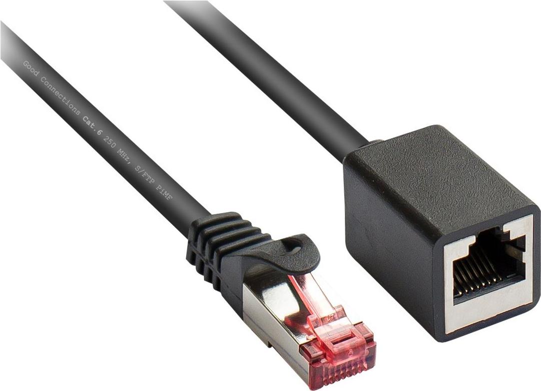 RNS® Patchkabelverlängerung mit Rastnasenschutz, Cat. 6, S/FTP, PiMF, PVC, 250MHz, OFC, CU, schwarz, 10m, Good Connections® (8063VR-100S)
