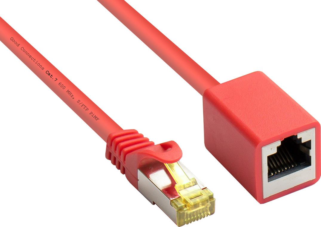 RJ45 Patchkabelverlängerung mitCat.7 Rohkabel und Rastnasenschutz (RNS®), S/FTP, PiMF, halogenfrei, 600MHz, OFC, rot, 2m, Good Connections® (8070VR-020R)