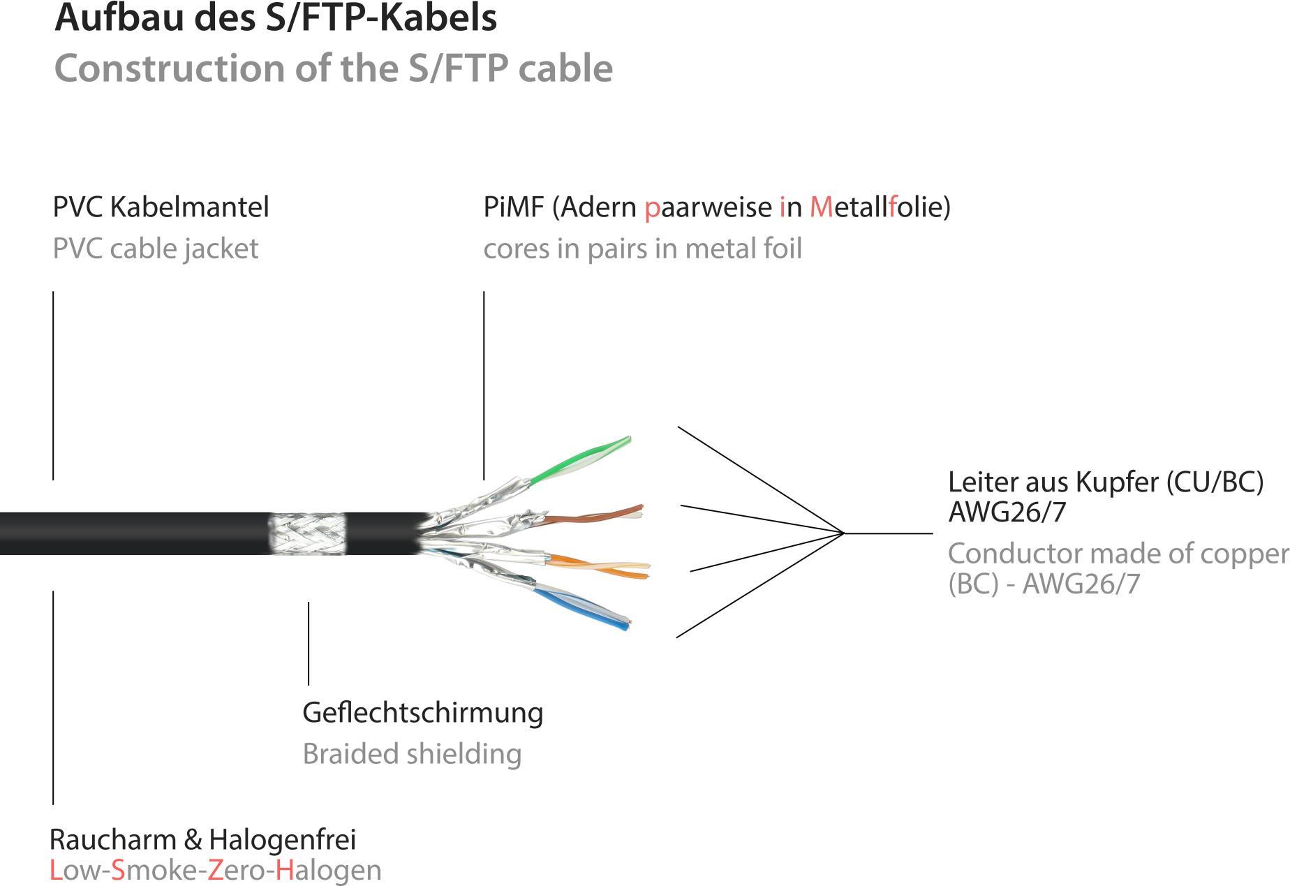 RJ45 Patchkabelverlängerung mitCat.7 Rohkabel und Rastnasenschutz (RNS®), S/FTP, PiMF, halogenfrei, 600MHz, OFC, schwarz, 5m, Good Connections® (8070VR-050S)