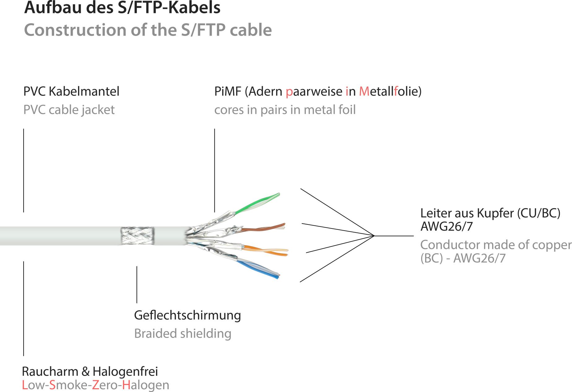 Diese RJ45 Patchkabelverlängerung ist mit allen herkömmlichen Geräten mit RJ45 Schnittstelle verwendbar, wie zum Beispiel, Computer, Notebook, DSL-Modem, Router, Switch, Spielekonsole, Fernseher und vielen mehr. Das Patchkabel ist doppelt geschirmt mit einer zusätzlichen Schirmung der Adernpaare. Somit ist es 10-Gigabitfähig, passend zu Ihrem schnellen DSL Anschluss. Das Patchkabel ist natürlich abwärtskompatibel zu alten Geräten und Installationen der Kategorien Cat. 5, Cat. 5e und Cat. 6. RJ45 Stecker mit RNS: Der RJ45 Stecker besitzt einen Rastnasenschutz (RNS). Dies verhindert ein Wegknicken der Rastnase auf der Oberseite des Steckers. Die Adernpaare bestehen zu 99,99% aus sauerstofffreiem Kupfer (OFC). Dies ermöglicht eine gesteigerte Signalübertragung des Kabels.Produkttext[/head]Der letzte Meter: Sie haben bereits ein Patchkabel in Ihren Räumen verlegt, beispielsweise hinter Regalen, unter Laminat oder hinter Fußleisten. Bisher hat die Länge zu Ihrem Gerät gereicht, doch nach Umstellung der Möbel reicht das vorhandene Kabel nun nicht mehr. Ihnen fehlt der \"letzte Meter\". Anstatt nun das gesamte Patchkabel zu ersetzen, schließen Sie einfach eine Patchkabelverlängerung in der für Sie passenden Länge bis zu Ihrem Endgerät an.Schutz Ihres Gerätes: Schützen Sie beispielsweise die Buchse Ihres Notebooks, in dem Sie diese Patchkabelverlängerung verwenden. Bei häufigem Ein- und Ausstecken des Patchkabels wird nicht die Buchse Ihres Notebooks beansprucht, sondern die Buchse der Verlängerung. Somit entfällt eine mögliche kostspielige Reparatur Ihres Notebooks.[head]Hauptmerkmale