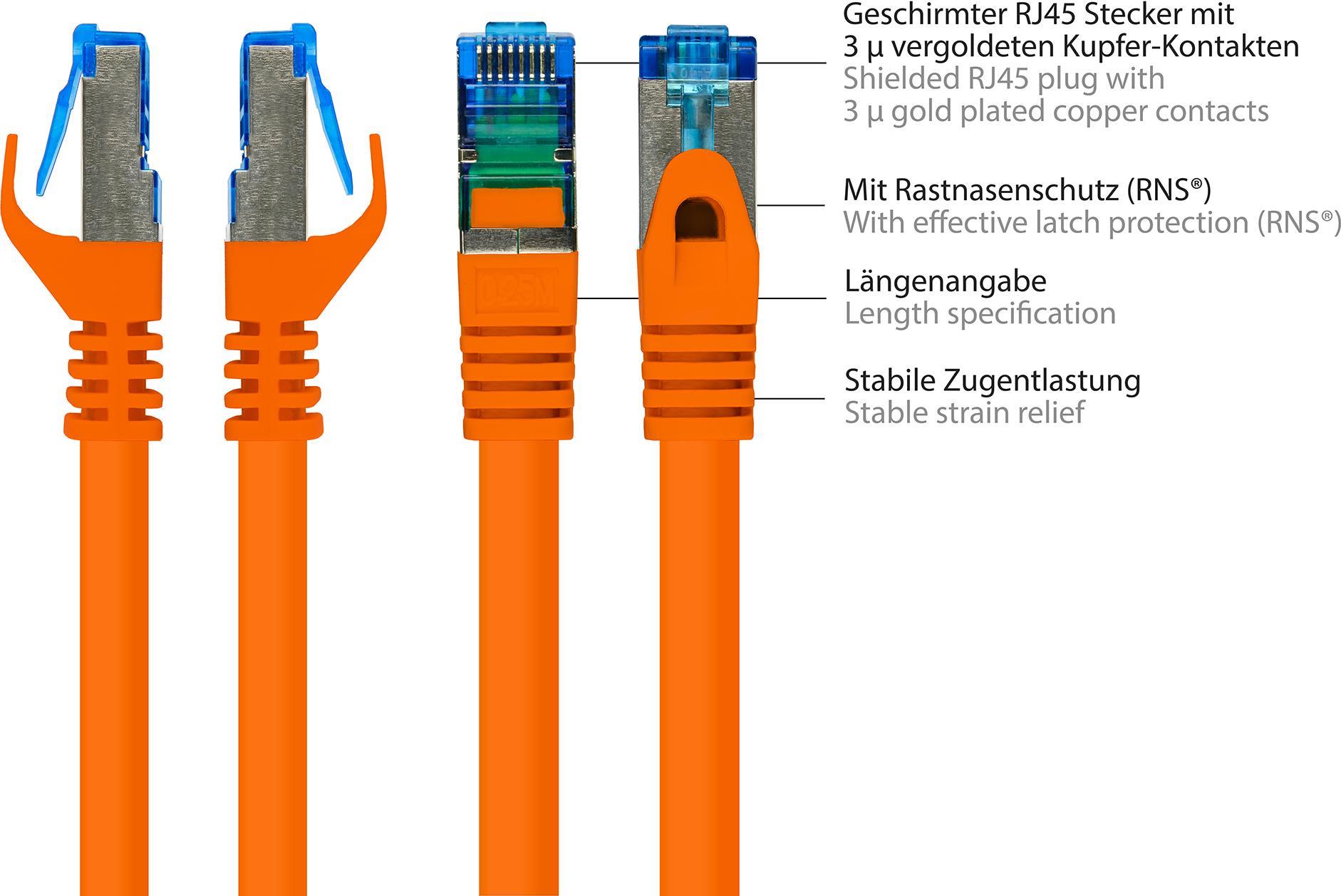 RNS® Patchkabel von Good Connections® mit effektivem Rastnasenschutz (RNS). Verhindert das Wegknicken der Rastnase auf dem Patchkabelstecker. So gehören abgebrochene Rastnasen der Vergangenheit an! Mit Rastnasenschutz ...