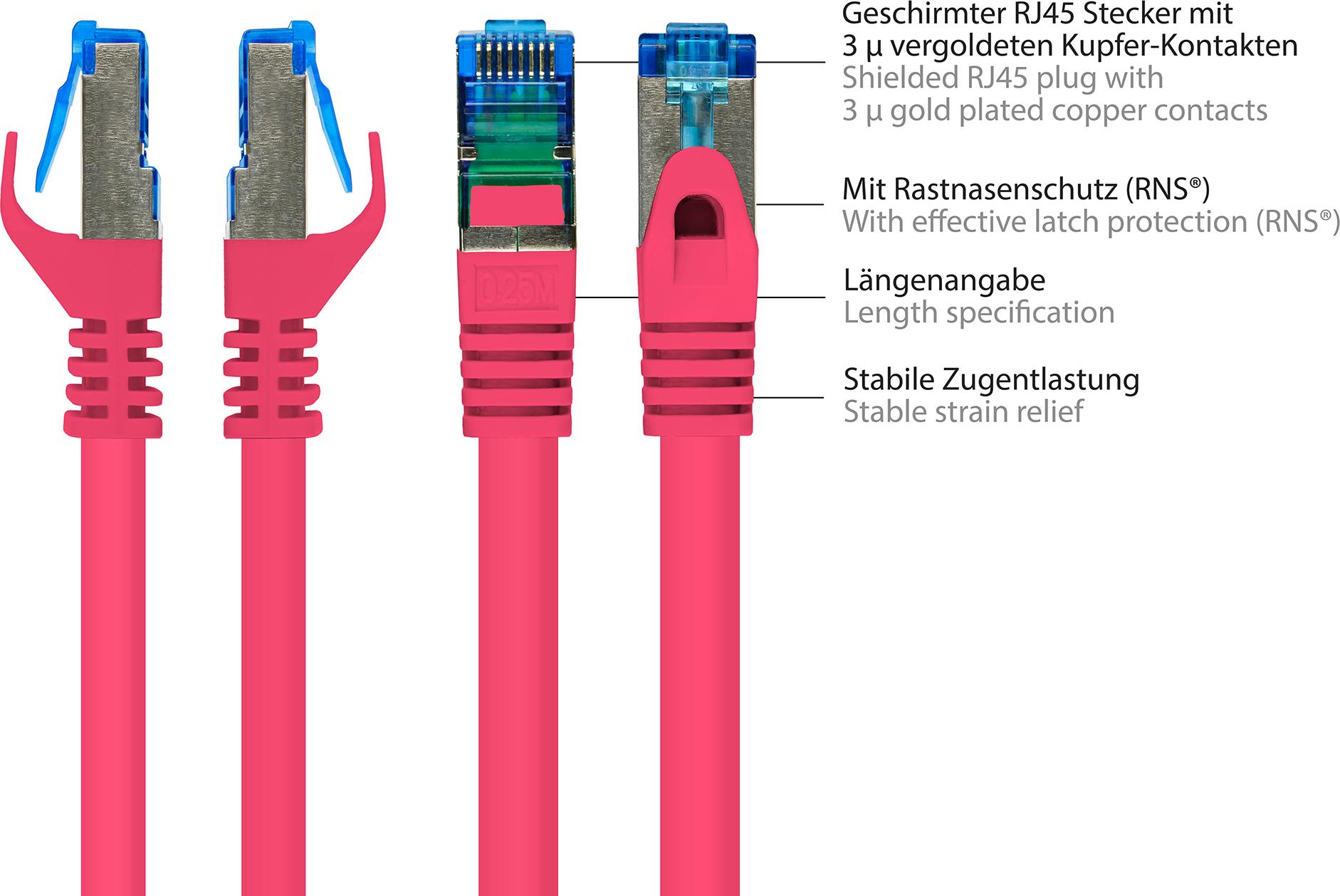 RNS® Patchkabel mit Rastnasenschutz, Cat. 6A, S/FTP, PIMF, halogenfrei, 500MHz, magenta, 0,5m, Good Connections (8060-H005M)