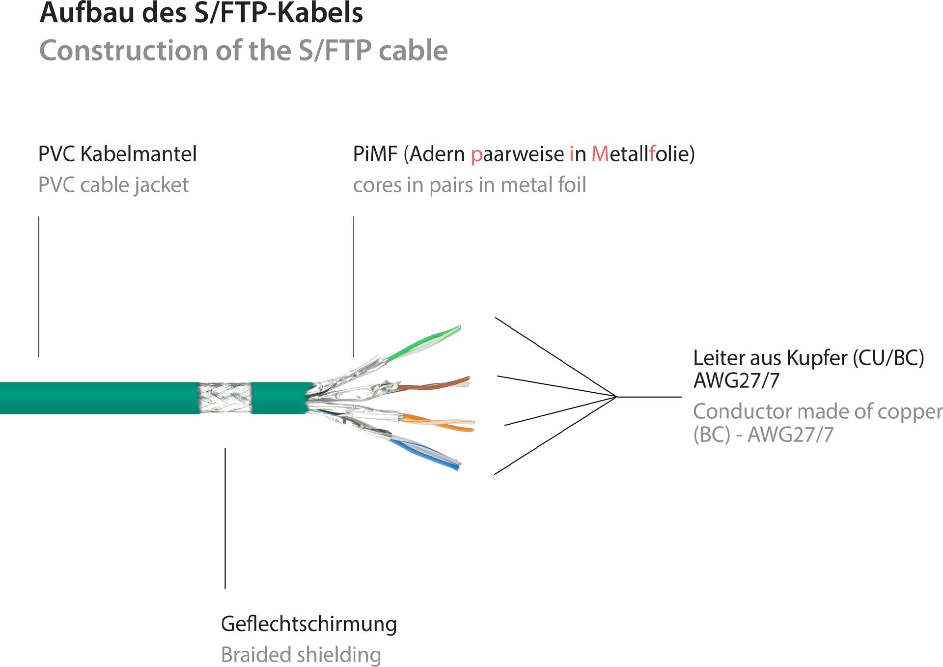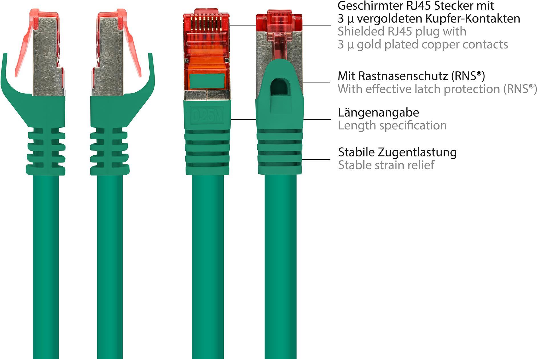 • RNS® Patchkabel mit Rastnasenschutz, Cat. 6, S/FTP, PiMF, PVC, 250MHz, grün, 15m, Good Connections (8060-150G)