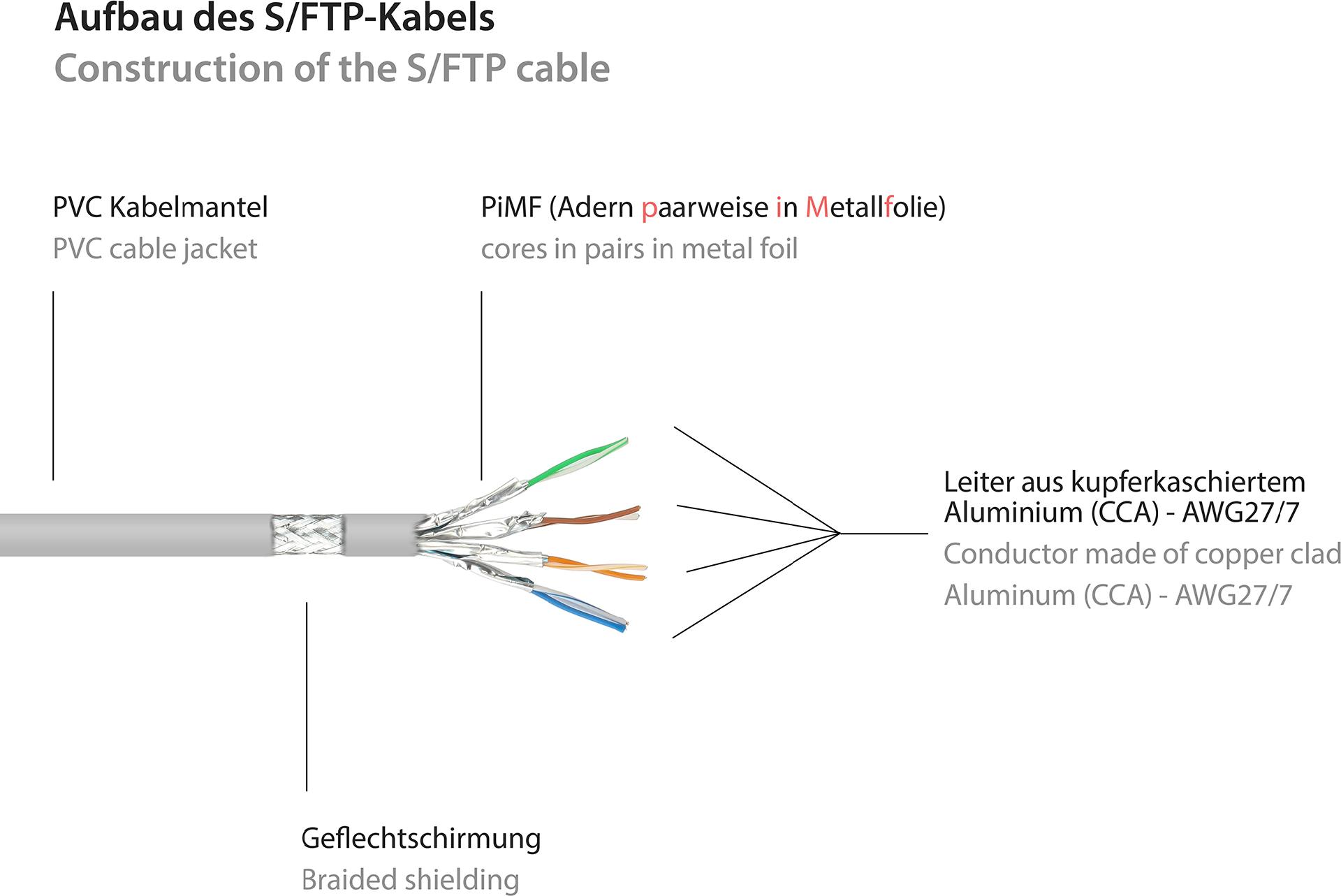 RNS® Patchkabel mit Rastnasenschutz, Cat. 6, S/FTP, PiMF, PVC, 250MHz, grau, 10m, Good Connections (8060-100)