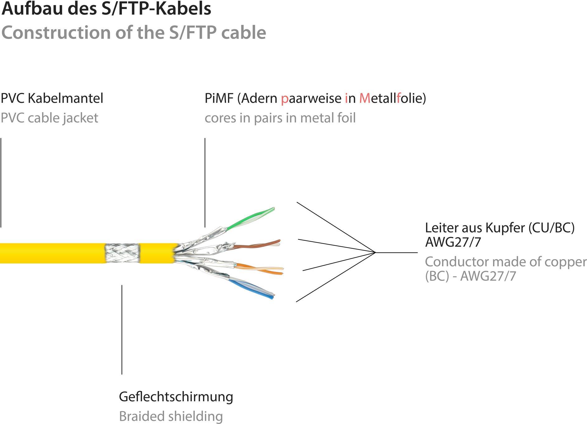 RNS® Patchkabel mit Rastnasenschutz, Cat. 6, S/FTP, PiMF, PVC, 250MHz, gelb, 25m, Good Connections (8060-250Y)