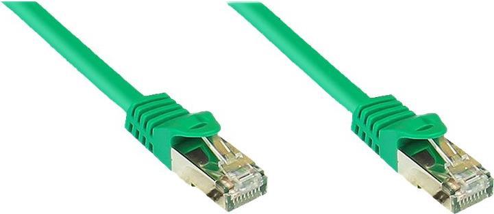 RJ45 Patchkabel mitCat.7 Rohkabel und Rastnasenschutz (RNS®), S/FTP, PiMF, halogenfrei, 600MHz, OFC, grün, 3m, Good Connections® (8070R-030G)