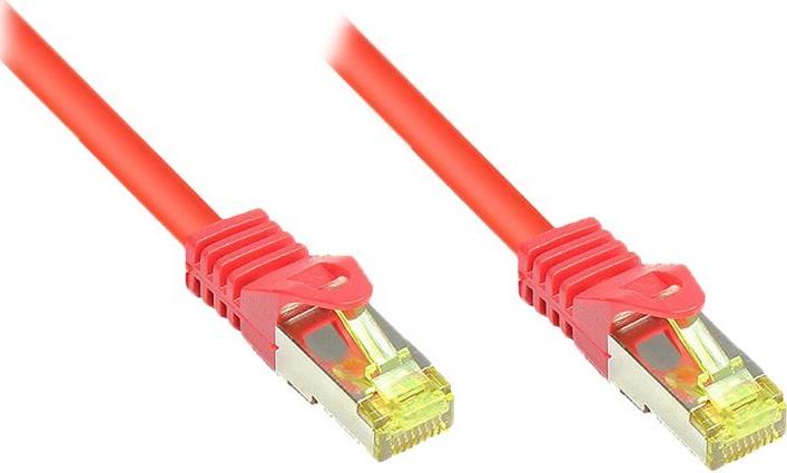 RJ45 Patchkabel mitCat.7 Rohkabel und Rastnasenschutz (RNS®), S/FTP, PiMF, halogenfrei, 600MHz, OFC, rot, 3m, Good Connections® (8070R-030R)