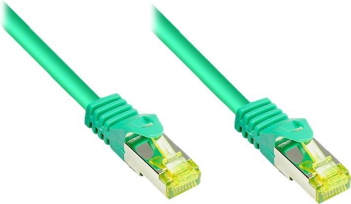 RJ45 Patchkabel mitCat.7 Rohkabel und Rastnasenschutz (RNS®), S/FTP, PiMF, halogenfrei, 600MHz, OFC, grün, 15m, Good Connections® (8070R-150G)