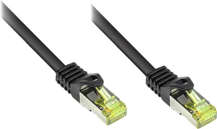 RJ45 Patchkabel mitCat.7 Rohkabel und Rastnasenschutz (RNS®), S/FTP, PiMF, halogenfrei, 600MHz, OFC, schwarz, 30m, Good Connections® (8070R-300S)