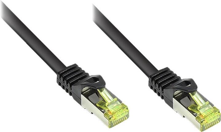 RJ45 Patchkabel mitCat.7 Rohkabel und Rastnasenschutz (RNS®), S/FTP, PiMF, halogenfrei, 600MHz, OFC, schwarz, 25m, Good Connections® (8070R-250S)