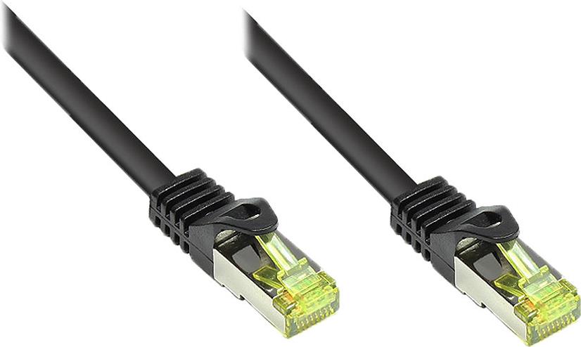 RJ45 Patchkabel mitCat.7 Rohkabel und Rastnasenschutz (RNS®), S/FTP, PiMF, halogenfrei, 600MHz, OFC, schwarz, 40m, Good Connections® (8070R-400S)
