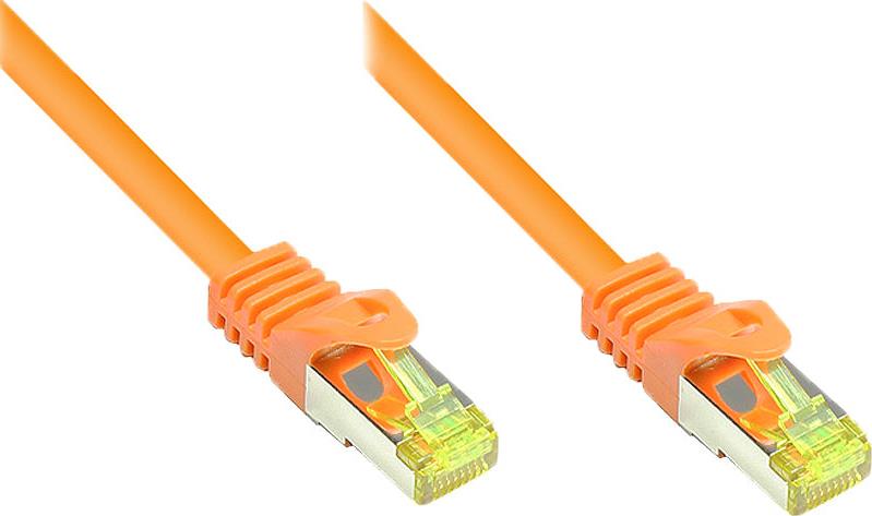 RJ45 Patchkabel mitCat.7 Rohkabel und Rastnasenschutz (RNS®), S/FTP, PiMF, halogenfrei, 600MHz, OFC, orange, 50m, Good Connections® (8070R-500O)