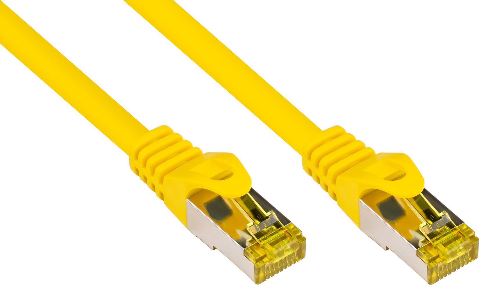 RJ45 Patchkabel mitCat.7 Rohkabel und Rastnasenschutz (RNS®), S/FTP, PiMF, halogenfrei, 600MHz, OFC, gelb, 50m, Good Connections® (8070R-500Y)