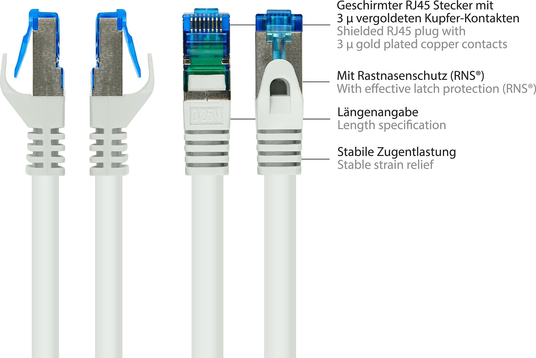 RNS® Patchkabel mit Rastnasenschutz, Cat. 6A, S/FTP, PiMF, halogenfrei, 500MHz, weiß, 0,25m, Good Connections (8060-H003W)
