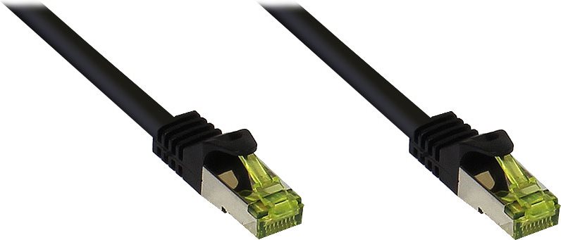 RJ45 Patchkabel mitCat.7 Rohkabel und Rastnasenschutz (RNS®), S/FTP, PiMF, halogenfrei, 600MHz, OFC, schwarz, 1,5m, Good Connections® (8070R-015S)