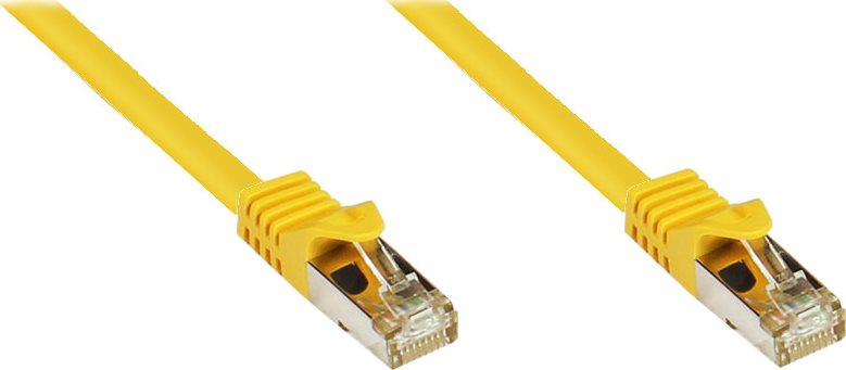 RJ45 Patchkabel mitCat.7 Rohkabel und Rastnasenschutz (RNS®), S/FTP, PiMF, halogenfrei, 600MHz, OFC, gelb, 1,5m, Good Connections® (8070R-015Y)