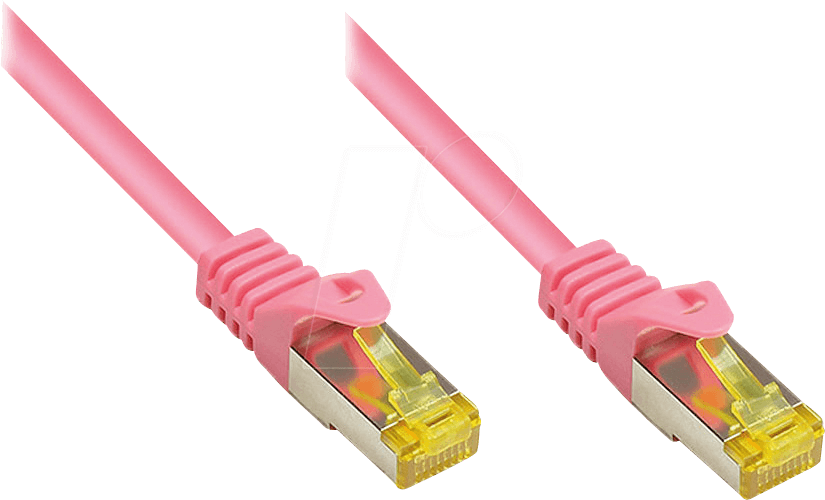 RJ45 Patchkabel mitCat.7 Rohkabel und Rastnasenschutz (RNS®), S/FTP, PiMF, halogenfrei, 600MHz, OFC, magenta, 10m, Good Connections® (8070R-100M)