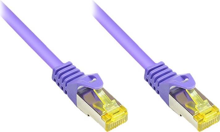 RJ45 Patchkabel mitCat.7 Rohkabel und Rastnasenschutz (RNS®), S/FTP, PiMF, halogenfrei, 600MHz, OFC, violett, 40m, Good Connections® (8070R-400V)