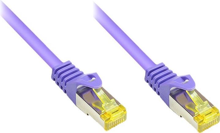 RJ45 Patchkabel mitCat.7 Rohkabel und Rastnasenschutz (RNS®), S/FTP, PiMF, halogenfrei, 600MHz, OFC, violett, 0,15m, Good Connections® (8070R-002V)