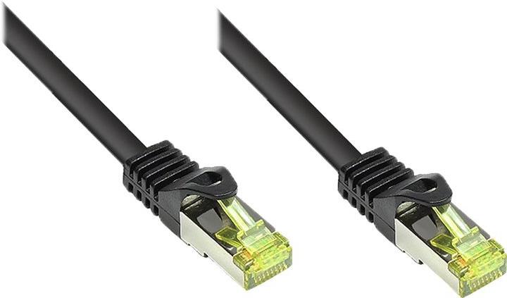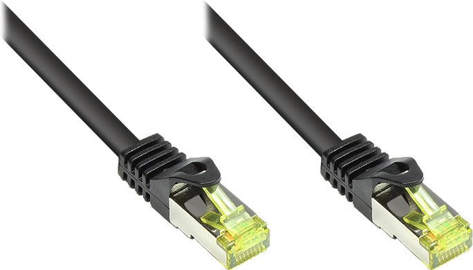 RJ45 Patchkabel mitCat.7 Rohkabel und Rastnasenschutz (RNS®), S/FTP, PiMF, halogenfrei, 600MHz, OFC, schwarz, 0,15m, Good Connections® (8070R-002S)