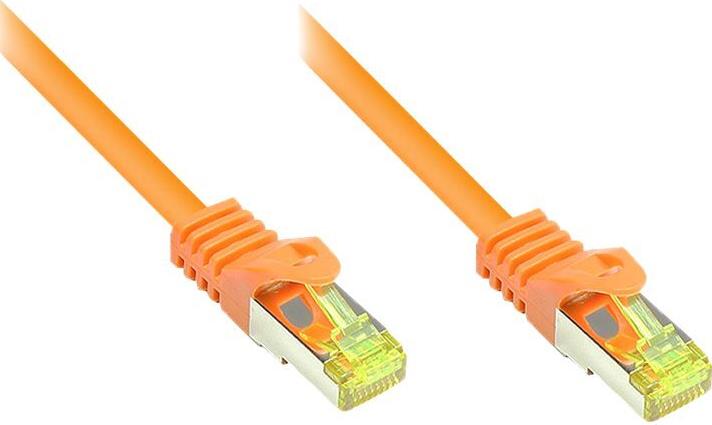 RJ45 Patchkabel mitCat.7 Rohkabel und Rastnasenschutz (RNS®), S/FTP, PiMF, halogenfrei, 600MHz, OFC, orange, 0,15m, Good Connections® (8070R-002O)