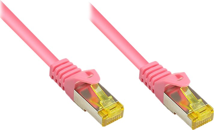 RJ45 Patchkabel mitCat.7 Rohkabel und Rastnasenschutz (RNS®), S/FTP, PiMF, halogenfrei, 600MHz, OFC, magenta, 0,15m, Good Connections® (8070R-002M)