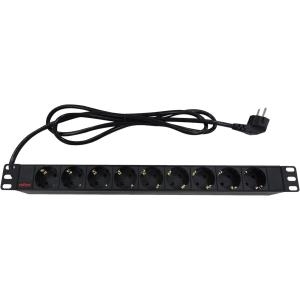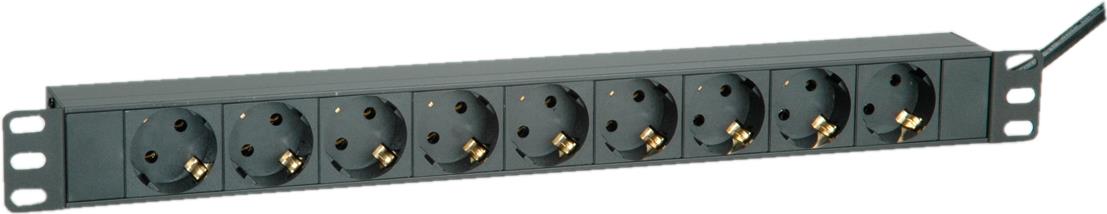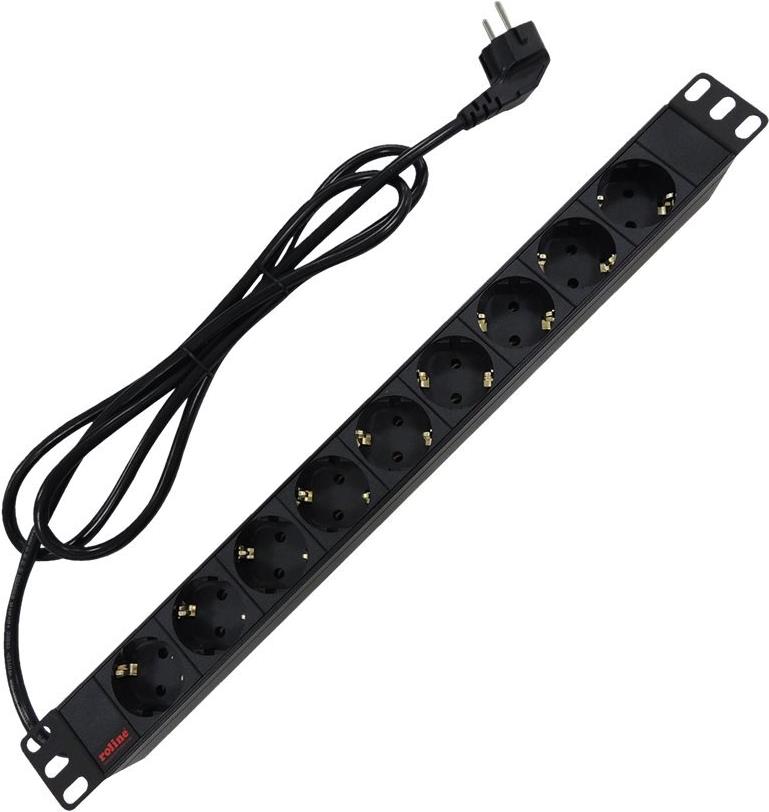 ROLINE - Steckdosenleiste (Rack - einbaufähig) - 250 V - 3600 Watt - Ausgangsbuchsen: 9 - 1U - 48.3 cm (19") - 2 m - Schwarz (19.07.1621)