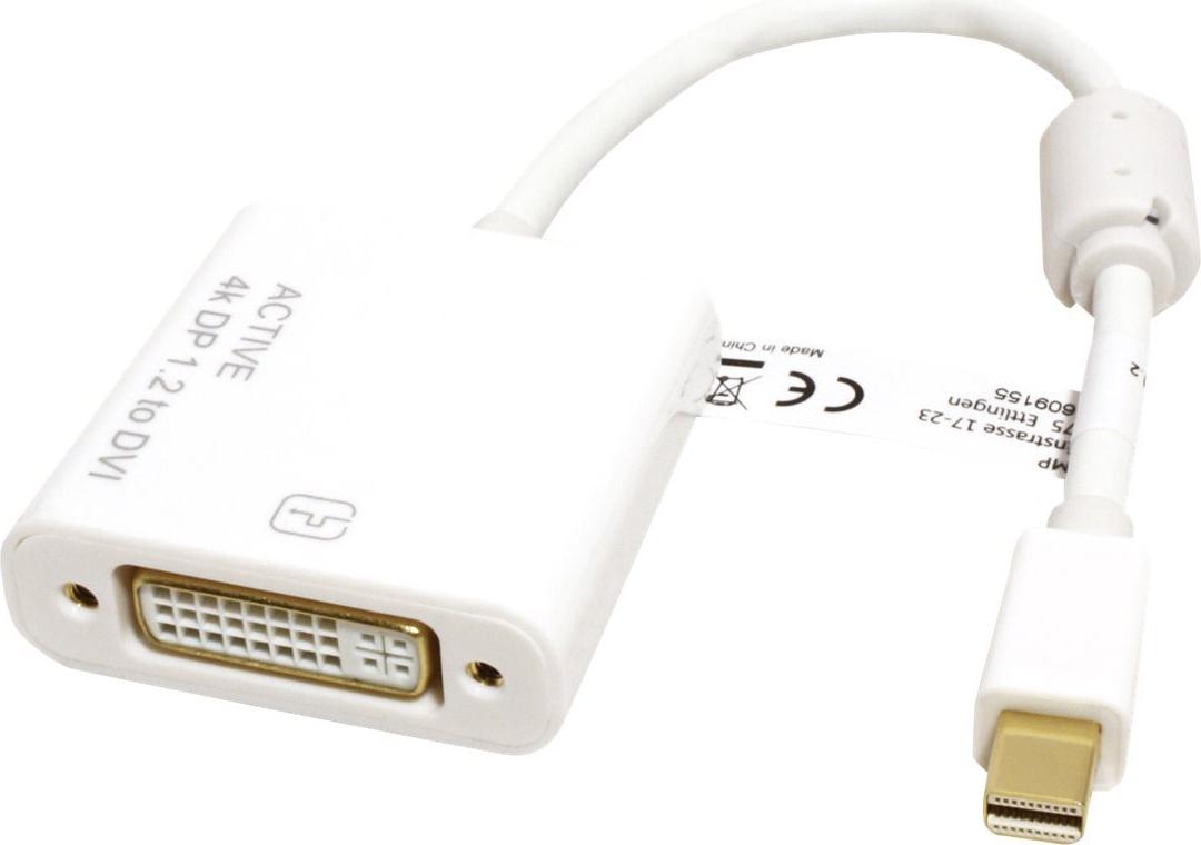 Mini DisplayPort zu DVI Kabeladapter zum Anschluss von beispielsweise einer Grafikkarte mit Mini DP an einen Monitor mit DVI Anschluss - mit einer Auflösung von bis zu 3840x2160 @30Hz! Sie wollen an Ihrer Grafikkarte mit Mini DisplayPort-Buchse ein DVI Kabel zum Monitor anbringen? Die Lösung ist das Mini DisplayPort-DVI-Adapterkabel zum Anschluss eines DVI ST-ST Kabels an eine Mini DisplayPort-Buchse der Grafikkarte. Adapterkabel mit Mini DisplayPort-Stecker und DVI-Buchse (Länge: 10 cm) Max. Auflösung: 3840 x 2160 (@30Hz) Hinweis: Der Mini DisplayPort-DVI-Adapter funktioniert nur in einer Richtung: der Mini DisplayPort-Stecker ist nur auf der Datenquellenseite verwendbar(z.B. Grafikkarte).