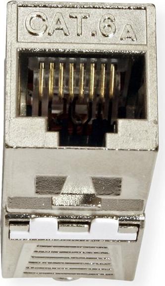 ROLINE Keystone in Kat.6A Qualität für den Einsatz in 10 Gigabit Ethernet Netzwerken mit einer Bandbreite von 500 MHz - jetzt in besonders schmaler Bauform Anschluss der Kabel an die Keystones erfolgt werkzeuglos - die Kabeladern werden einfach in die Führungen gelegt; das Modul wird geschlossen und zusammengedrückt - fertig ist der Anschluss Keystones mit aufgedruckter Farbcodierung gemäß EIA / TIA 568 Die Keystone-Module können in einen 19"-Modulträger (26.11.0360 in schwarz oder 26.11.0359 in lichtgrau) mit Erdungsanschluss eingeklinkt werden. Oder sie werden zusammen mit einer Modulaufnahme 25.16.8579 zur Anschlussdose. Die ROLINE Kat.6A/Class EA 19"-Keystones genügen den übertragungstechnischen Eigenschaften eines Kat.6A/Class EA Links.