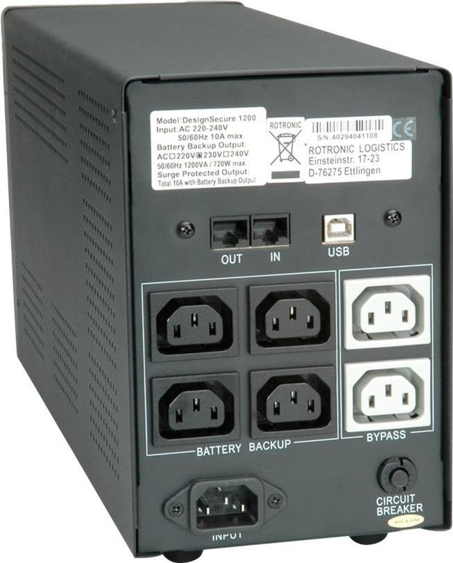 Roline USV DesignSecure ist eine in line-interaktiver Technik für Einsatz am Arbeitsplatz. Regelung der Differenzen der Eingangs erfolgt über die Sollspannung über die Buck und Boost. Das Batteriemanagement überwacht die Batterien der USV und lädt diese nur wenn erforderlich; das führt zu einer Verlängerung der Lebensdauer der Batterien um bis zu 50%.
