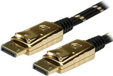 ROLINE GOLD DisplayPort Kabel mit beidseitigem DP-Anschluss für das Verbinden eines Ultrabooks, Notebooks/Laptops oder PCs mit einem Monitor, TV, Beamer oder Projektor - für Bildschirmübertragungen in exzellenter Qualität mit einer Auflösung von bis zu 3840x2160 / 4096x2560 @60Hz!