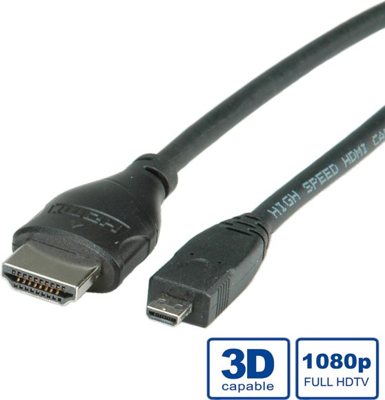 ROLINE HDMI High Speed Kabel mit Ethernet, HDMI ST - Micro HDMI ST 2,0m (11.04.5581)
