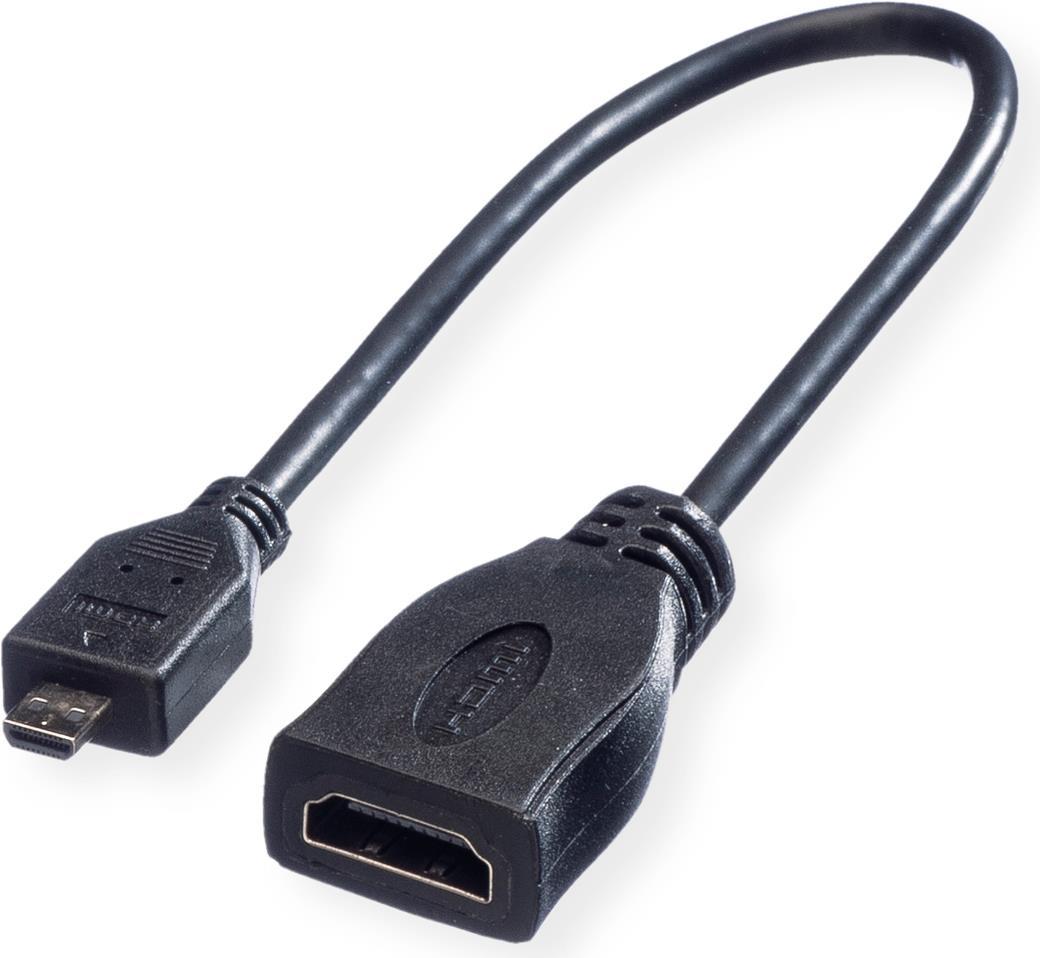 • ROLINE HDMI High Speed Kabel mit Ethernet, HDMI BU - Micro HDMI ST 0,15m (11.04.5584)