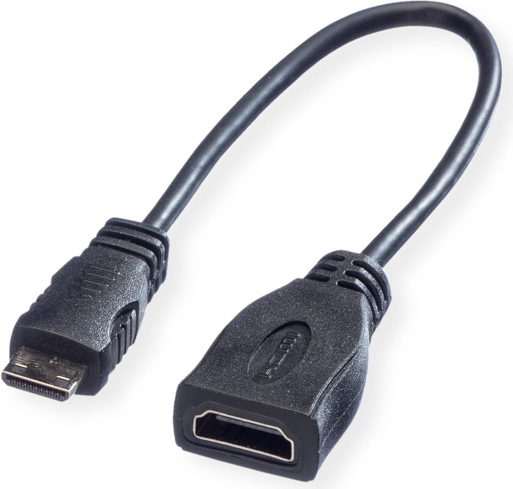 • ROLINE HDMI High Speed Kabel mit Ethernet, HDMI BU - Mini HDMI ST 0,15m (11.04.5586)